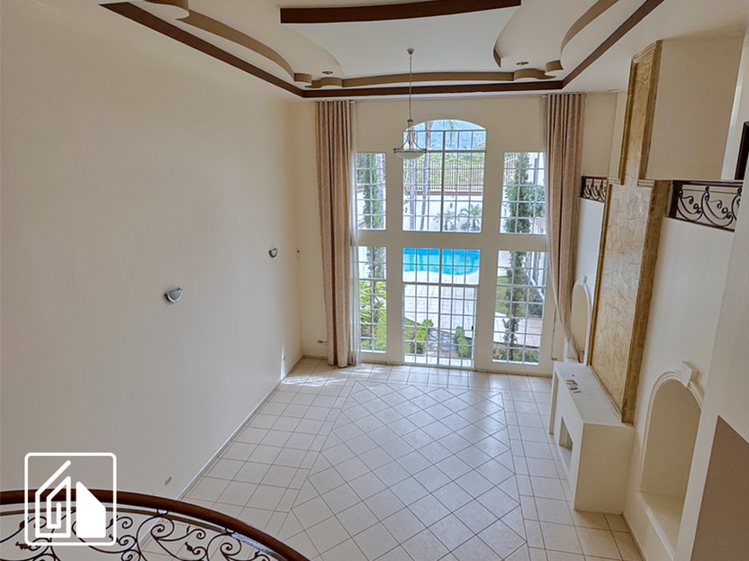 La casa cuenta con una distribución pensada para la vida moderna: sala principal, comedor formal, cocina equipada, cinco habitaciones, cinco baños y medio, sala familiar, sala de juegos y sauna. Además, dispone de dos habitaciones de servicio, área de lavandería y un área social con piscina, perfecta para compartir momentos inolvidables con la familia o recibir invitados en un ambiente privado y exclusivo. Su estacionamiento para seis vehículos garantiza practicidad y seguridad en el día a día.